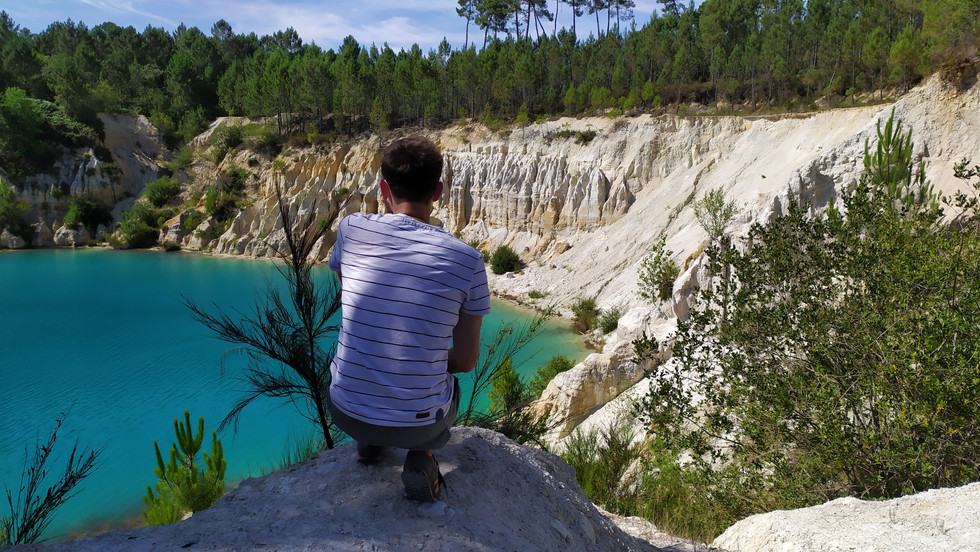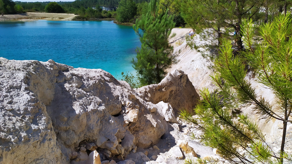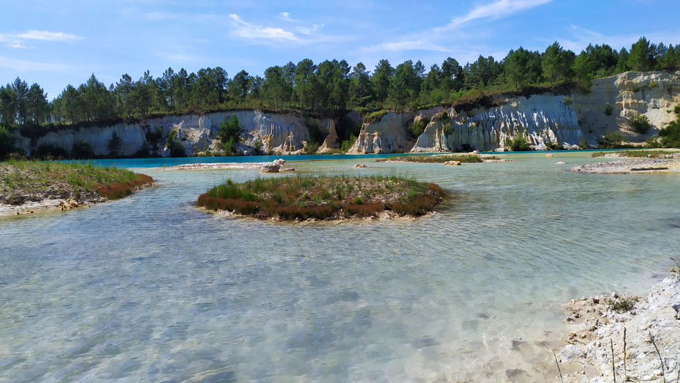 De 1975 à 2013, c'était une immense carrière d'exploitation de l'argile blanche ou kaolin (pour porcelaine, tuiles, briques mais aussi pour la pharmacie et la cosmétique) qui, avec le temps, a ouvert d'énormes fosses qui se sont remplies d'eau de pluie devenant des lacs d'un bleu turquoise hallucinant. L'argile des sols rend cette eau très acide, proche du vinaigre et d'ailleurs des filins entourent les lacs, interdits à la baignade. Aucun développement de vie n'y est possible, pour l'instant.
